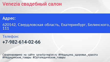Venezia, свадебный салон по адресу 620142, Свердловская область, Екатеринбург, Белинского, 111 в дальнейшем Организация, размещена в следующих категориях: