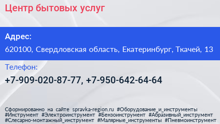 Центр бытовых услуг по адресу 620100, Свердловская область, Екатеринбург, Ткачей, 13 в дальнейшем Организация, размещена в следующих категориях: