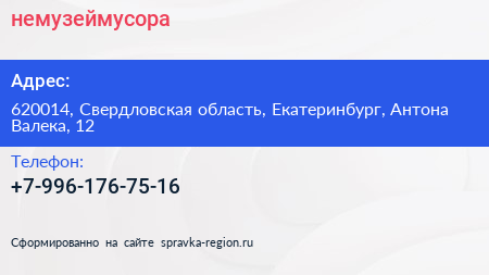 #немузеймусора по адресу 620014, Свердловская область, Екатеринбург, Антона Валека, 12 в дальнейшем Организация, размещена в следующих категориях:
