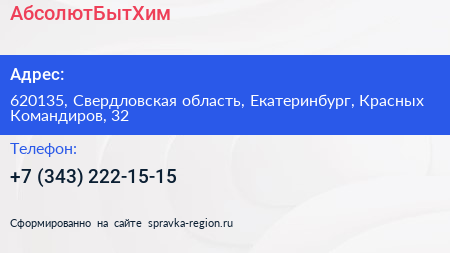АбсолютБытХим по адресу 620135, Свердловская область, Екатеринбург, Красных Командиров, 32 в дальнейшем Организация, размещена в следующих категориях:
