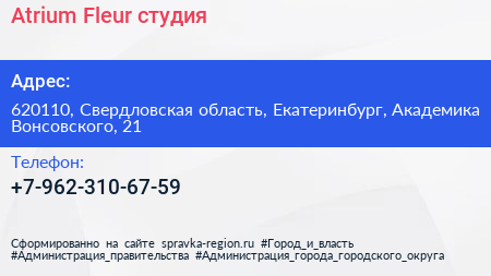 Atrium Fleur, студия по адресу 620110, Свердловская область, Екатеринбург, Академика Вонсовского, 21 в дальнейшем Организация, размещена в следующих категориях: