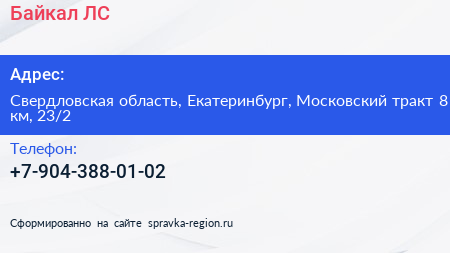 Байкал-ЛС по адресу Свердловская область, Екатеринбург, Московский тракт 8 км, 23/2 в дальнейшем Организация, размещена в следующих категориях: