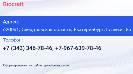 Biocraft по адресу 620061, Свердловская область, Екатеринбург, Главная, 8а в дальнейшем Организация, размещена в следующих категориях: