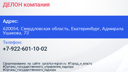ДЕЛОН, компания по адресу 620054, Свердловская область, Екатеринбург, Адмирала Ушакова, 73 в дальнейшем Организация, размещена в следующих категориях: