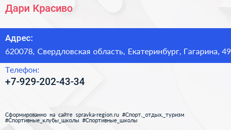 Дари Красиво по адресу 620078, Свердловская область, Екатеринбург, Гагарина, 49 в дальнейшем Организация, размещена в следующих категориях: