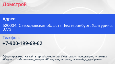 Домстрой по адресу 620034, Свердловская область, Екатеринбург, Халтурина, 37/3 в дальнейшем Организация, размещена в следующих категориях: