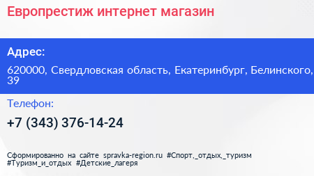 Европрестиж, интернет-магазин по адресу 620000, Свердловская область, Екатеринбург, Белинского, 39 в дальнейшем Организация, размещена в следующих категориях: