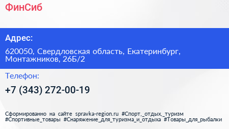 ФинСиб по адресу 620050, Свердловская область, Екатеринбург, Монтажников, 26Б/2 в дальнейшем Организация, размещена в следующих категориях: