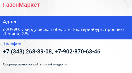 ГазонМаркет по адресу 620990, Свердловская область, Екатеринбург, проспект Ленина, 38а в дальнейшем Организация, размещена в следующих категориях: