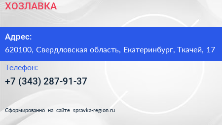 ХОЗЛАВКА по адресу 620100, Свердловская область, Екатеринбург, Ткачей, 17 в дальнейшем Организация, размещена в следующих категориях: