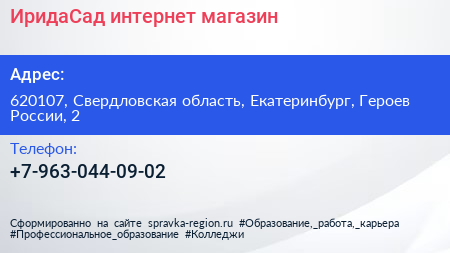 ИридаСад, интернет-магазин по адресу 620107, Свердловская область, Екатеринбург, Героев России, 2 в дальнейшем Организация, размещена в следующих категориях: