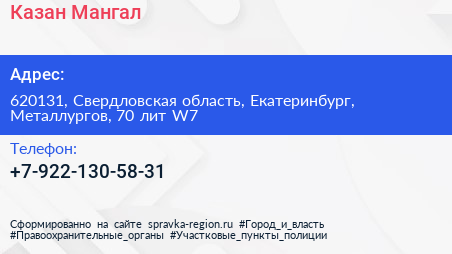 Казан Мангал по адресу 620131, Свердловская область, Екатеринбург, Металлургов, 70 лит W7 в дальнейшем Организация, размещена в следующих категориях: