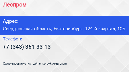 Леспром по адресу Свердловская область, Екатеринбург, 124-й квартал, 10Б в дальнейшем Организация, размещена в следующих категориях: