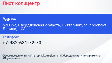 Лист, копицентр по адресу 620062, Свердловская область, Екатеринбург, проспект Ленина, 103 в дальнейшем Организация, размещена в следующих категориях: