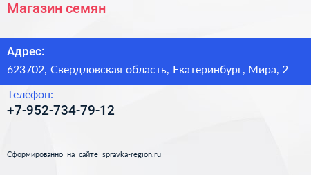 Магазин семян по адресу 623702, Свердловская область, Екатеринбург, Мира, 2 в дальнейшем Организация, размещена в следующих категориях: