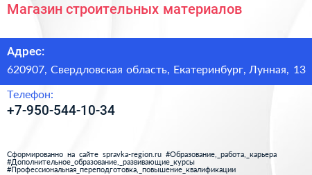 Магазин строительных материалов по адресу 620907, Свердловская область, Екатеринбург, Лунная, 13 в дальнейшем Организация, размещена в следующих категориях: