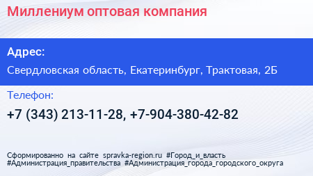 Миллениум, оптовая компания по адресу Свердловская область, Екатеринбург, Трактовая, 2Б в дальнейшем Организация, размещена в следующих категориях: