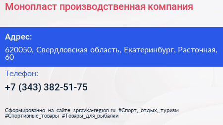Монопласт, производственная компания по адресу 620050, Свердловская область, Екатеринбург, Расточная, 60 в дальнейшем Организация, размещена в следующих категориях: