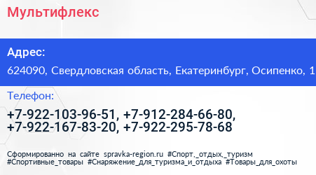 Мультифлекс по адресу 624090, Свердловская область, Екатеринбург, Осипенко, 1 в дальнейшем Организация, размещена в следующих категориях: