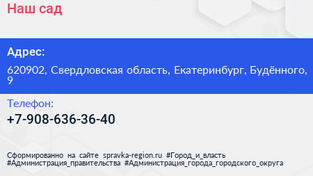 Наш сад по адресу 620902, Свердловская область, Екатеринбург, Будённого, 9 в дальнейшем Организация, размещена в следующих категориях: