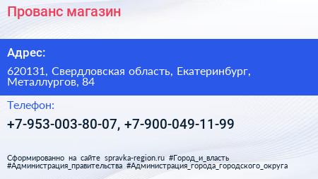 Прованс, магазин по адресу 620131, Свердловская область, Екатеринбург, Металлургов, 84 в дальнейшем Организация, размещена в следующих категориях: