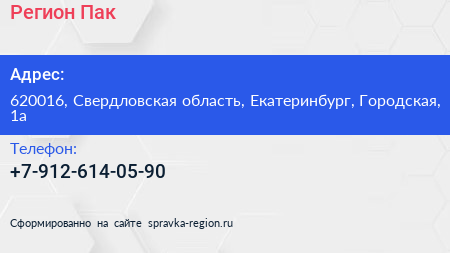 Регион Пак по адресу 620016, Свердловская область, Екатеринбург, Городская, 1а в дальнейшем Организация, размещена в следующих категориях:
