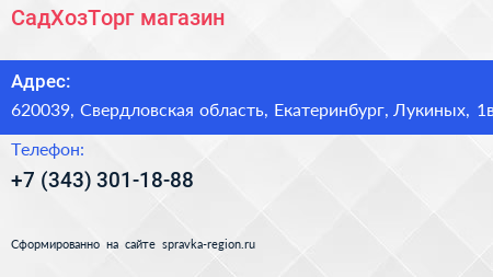 СадХозТорг, магазин по адресу 620039, Свердловская область, Екатеринбург, Лукиных, 1в в дальнейшем Организация, размещена в следующих категориях: