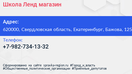 Школа Ленд, магазин по адресу 620000, Свердловская область, Екатеринбург, Бажова, 125 в дальнейшем Организация, размещена в следующих категориях: