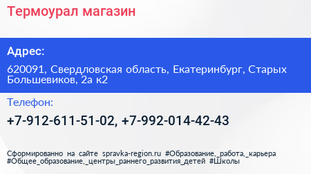 Термоурал, магазин по адресу 620091, Свердловская область, Екатеринбург, Старых Большевиков, 2а к2 в дальнейшем Организация, размещена в следующих категориях: