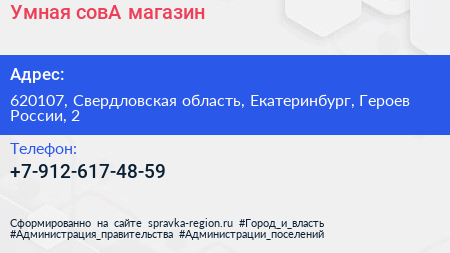 Умная совА, магазин по адресу 620107, Свердловская область, Екатеринбург, Героев России, 2 в дальнейшем Организация, размещена в следующих категориях: