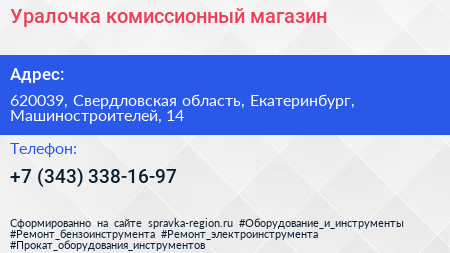 Уралочка, комиссионный магазин по адресу 620039, Свердловская область, Екатеринбург, Машиностроителей, 14 в дальнейшем Организация, размещена в следующих категориях: