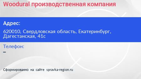 Woodural, производственная компания по адресу 620010, Свердловская область, Екатеринбург, Дагестанская, 41с в дальнейшем Организация, размещена в следующих категориях: