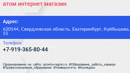 атом, интернет-магазин по адресу 620144, Свердловская область, Екатеринбург, Куйбышева, 55 в дальнейшем Организация, размещена в следующих категориях:
