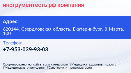 инструментесть.рф, компания по адресу 620144, Свердловская область, Екатеринбург, 8 Марта, 100 в дальнейшем Организация, размещена в следующих категориях: