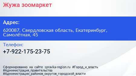 Жужа, зоомаркет по адресу 620087, Свердловская область, Екатеринбург, Самолётная, 45 в дальнейшем Организация, размещена в следующих категориях: