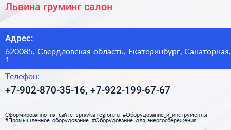 Львина, груминг-салон по адресу 620085, Свердловская область, Екатеринбург, Санаторная, 1 в дальнейшем Организация, размещена в следующих категориях: