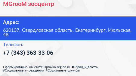 MGrooM, зооцентр по адресу 620137, Свердловская область, Екатеринбург, Июльская, 48 в дальнейшем Организация, размещена в следующих категориях: