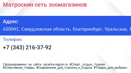 Матроскин, сеть зоомагазинов по адресу 620041, Свердловская область, Екатеринбург, Уральская, 1 в дальнейшем Организация, размещена в следующих категориях: