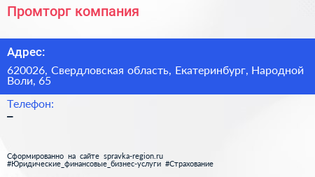 Промторг, компания по адресу 620026, Свердловская область, Екатеринбург, Народной Воли, 65 в дальнейшем Организация, размещена в следующих категориях: