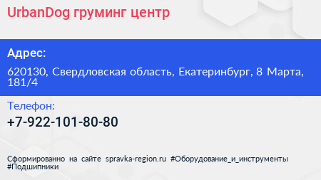 UrbanDog, груминг-центр по адресу 620130, Свердловская область, Екатеринбург, 8 Марта, 181/4 в дальнейшем Организация, размещена в следующих категориях: