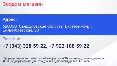 Зоодом, магазин по адресу 620050, Свердловская область, Екатеринбург, Билимбаевская, 30 в дальнейшем Организация, размещена в следующих категориях: