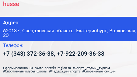 husse по адресу 620137, Свердловская область, Екатеринбург, Волховская, 20 в дальнейшем Организация, размещена в следующих категориях: