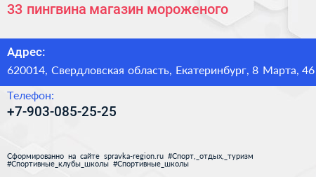 33 пингвина, магазин мороженого по адресу 620014, Свердловская область, Екатеринбург, 8 Марта, 46 в дальнейшем Организация, размещена в следующих категориях: