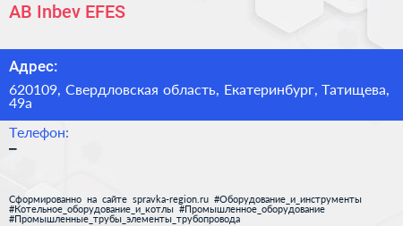 AB Inbev EFES по адресу 620109, Свердловская область, Екатеринбург, Татищева, 49а в дальнейшем Организация, размещена в следующих категориях: