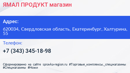 ЯМАЛ ПРОДУКТ, магазин по адресу 620034, Свердловская область, Екатеринбург, Халтурина, 55 в дальнейшем Организация, размещена в следующих категориях: