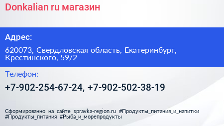 Donkalian.ru, магазин по адресу 620073, Свердловская область, Екатеринбург, Крестинского, 59/2 в дальнейшем Организация, размещена в следующих категориях: