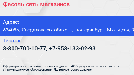 Фасоль, сеть магазинов по адресу 624096, Свердловская область, Екатеринбург, Мальцева, 3 в дальнейшем Организация, размещена в следующих категориях: