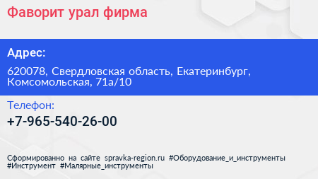 Фаворит урал, фирма по адресу 620078, Свердловская область, Екатеринбург, Комсомольская, 71а/10 в дальнейшем Организация, размещена в следующих категориях: