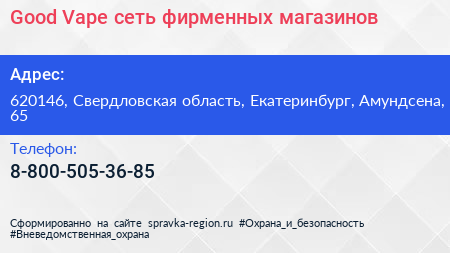 Good Vape, сеть фирменных магазинов по адресу 620146, Свердловская область, Екатеринбург, Амундсена, 65 в дальнейшем Организация, размещена в следующих категориях: