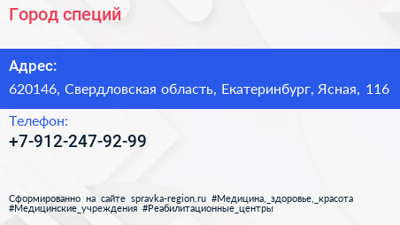 Город специй по адресу 620146, Свердловская область, Екатеринбург, Ясная, 116 в дальнейшем Организация, размещена в следующих категориях: